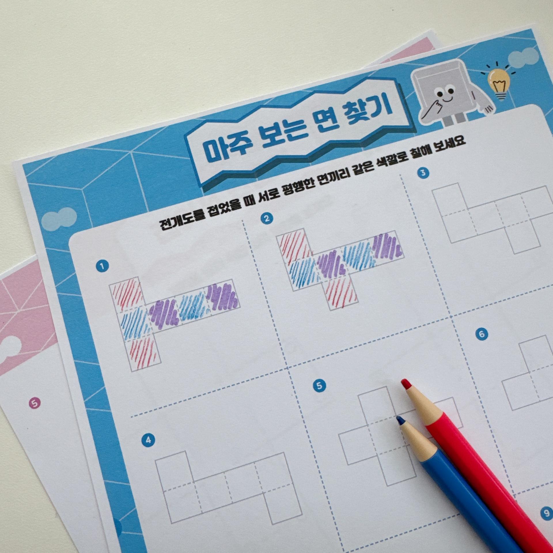 서로 마주보는 평행한 면도 색칠해서 찾아보고,